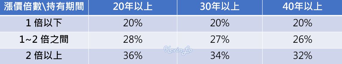 依持有期間的不同, 各級距的適用稅率也就不同, 優惠稅率級距表如下:
