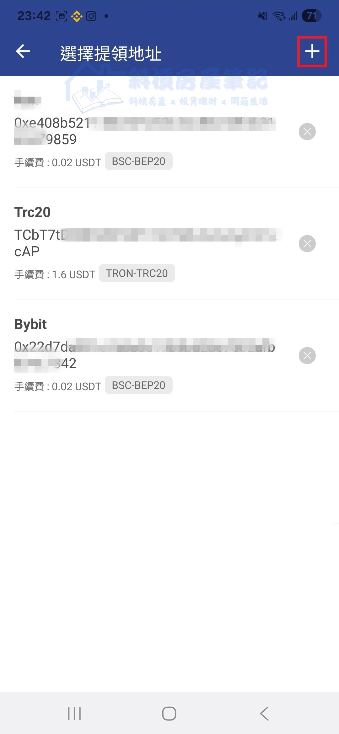 但如果是第一次提領,就得新增地址,點右上角的 + 號開始添加。