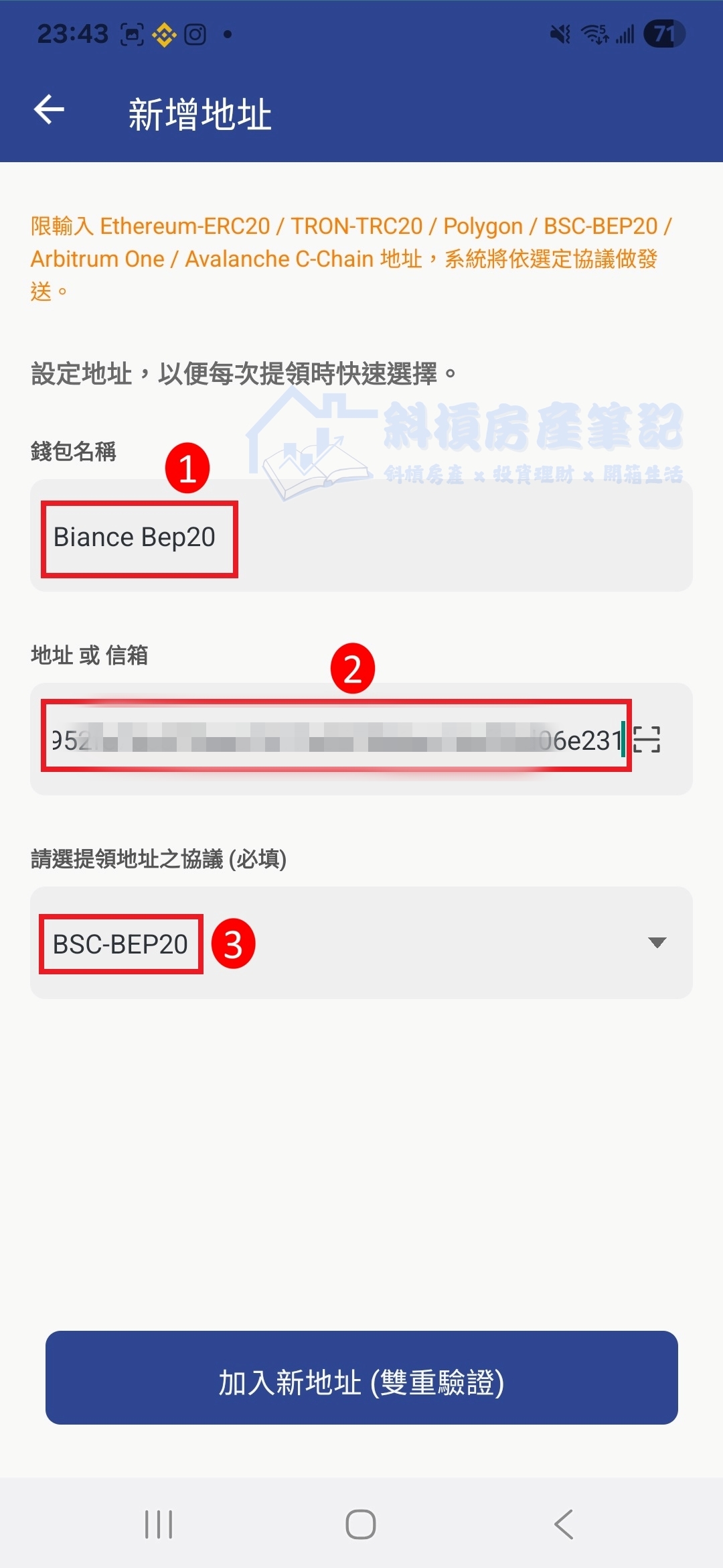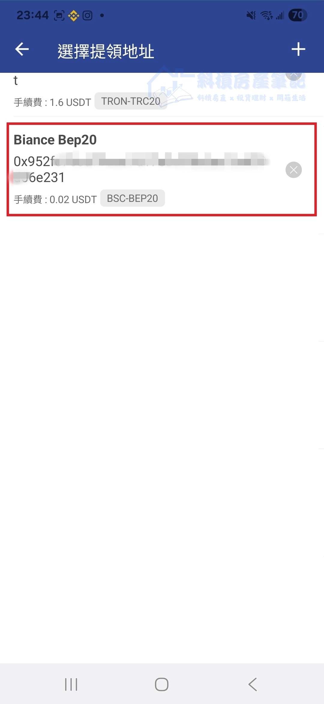 如果你以前新增過提領地址,之後只要從列表選擇就好。