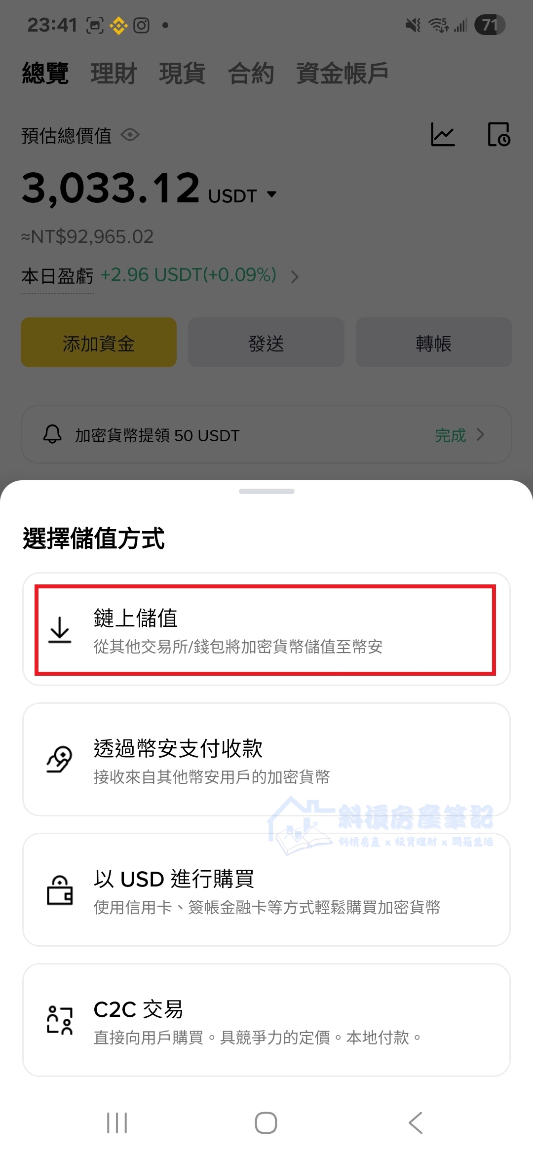 我們這次是要把 USDT 從 MAX 轉到幣安,所以這邊要選【鏈上儲值】。