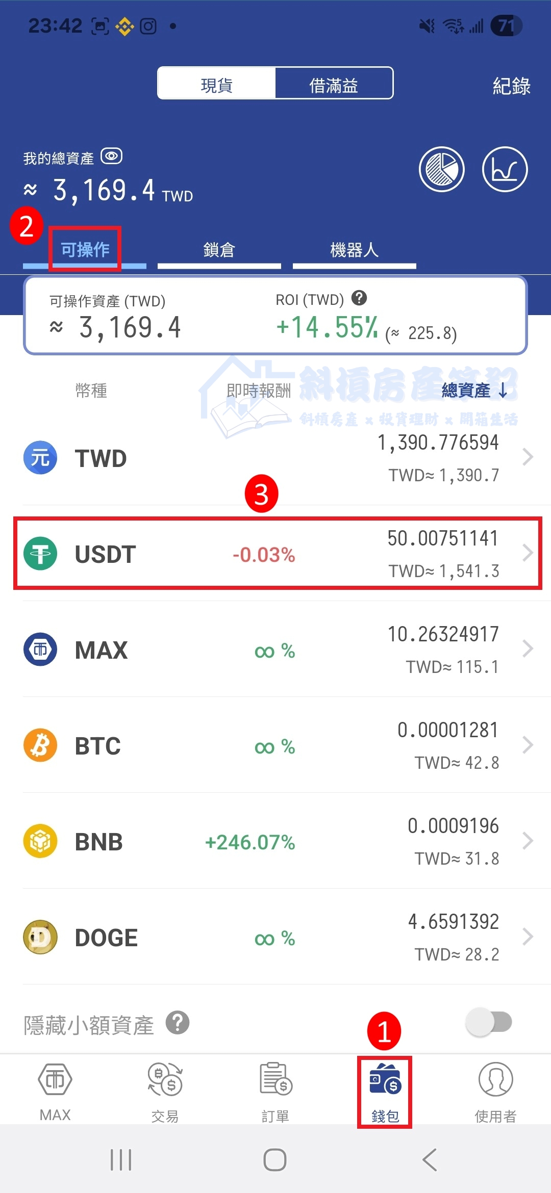 就能看到剛從 MAX 轉過來的 USDT 數量,多了 50 USDT,表示轉帳成功。