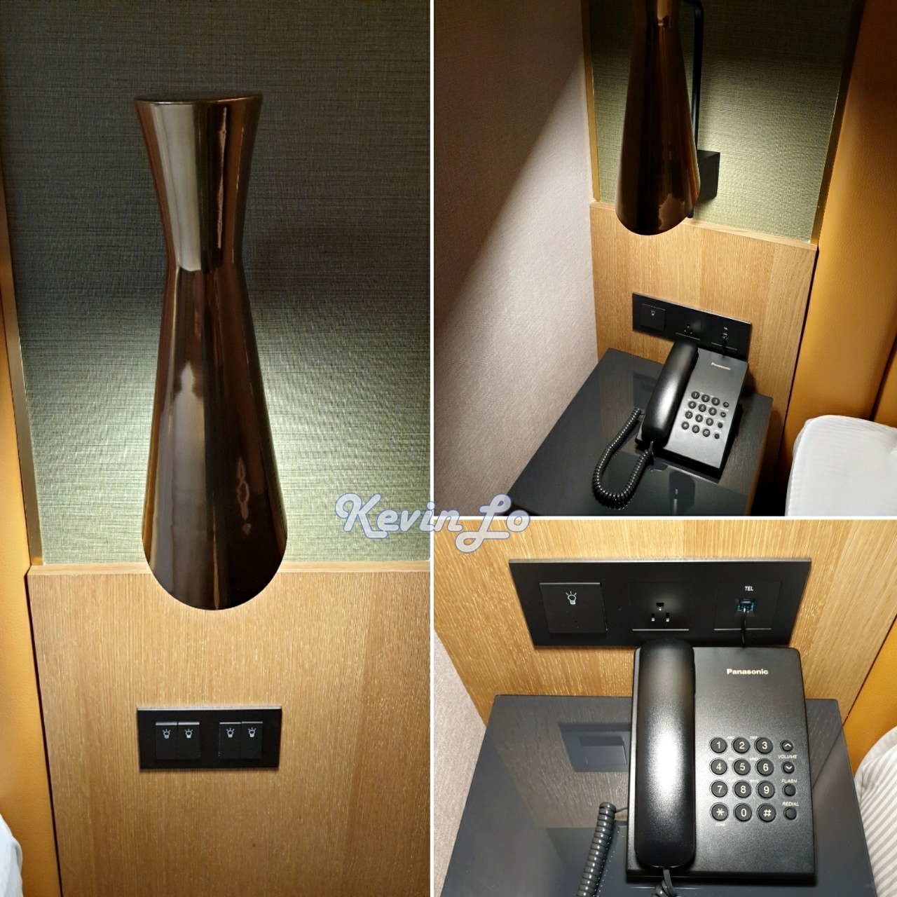房間內插座很多, 特別的是有 USB 充電孔與萬國插座, 這對國外旅客來說方便使用, 不用再多插轉接頭.