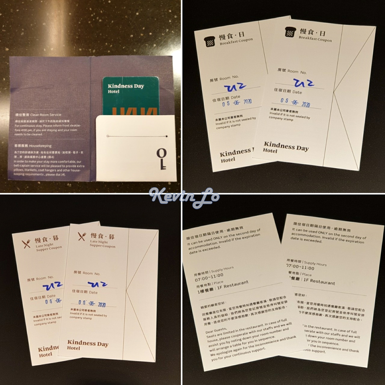 Check in 完成後, 櫃台人員會給房卡、 「 慢食‧日 」 的早餐券與 「 慢食‧暮 」 的宵夜券, 並做簡單的介紹: