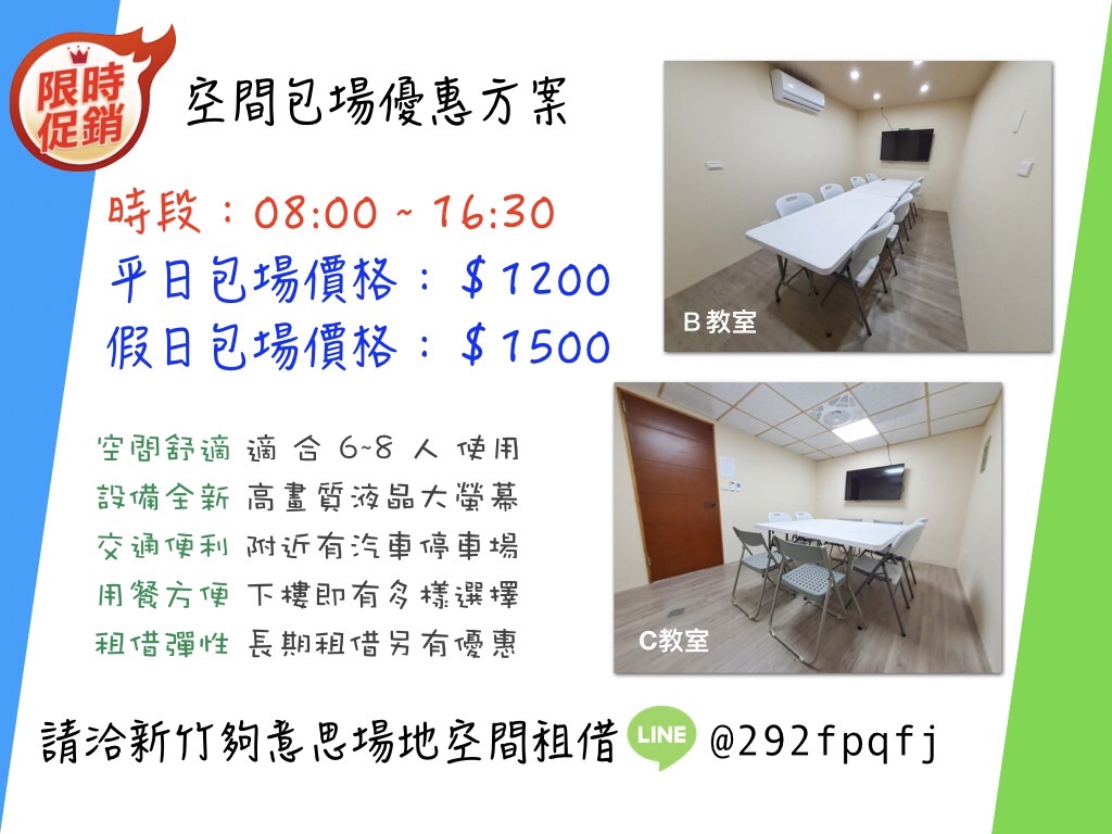 ● 挑戰全新竹場地租借高 CP 值的環境, 提供優質設備, 回饋給有場地需求的朋友.