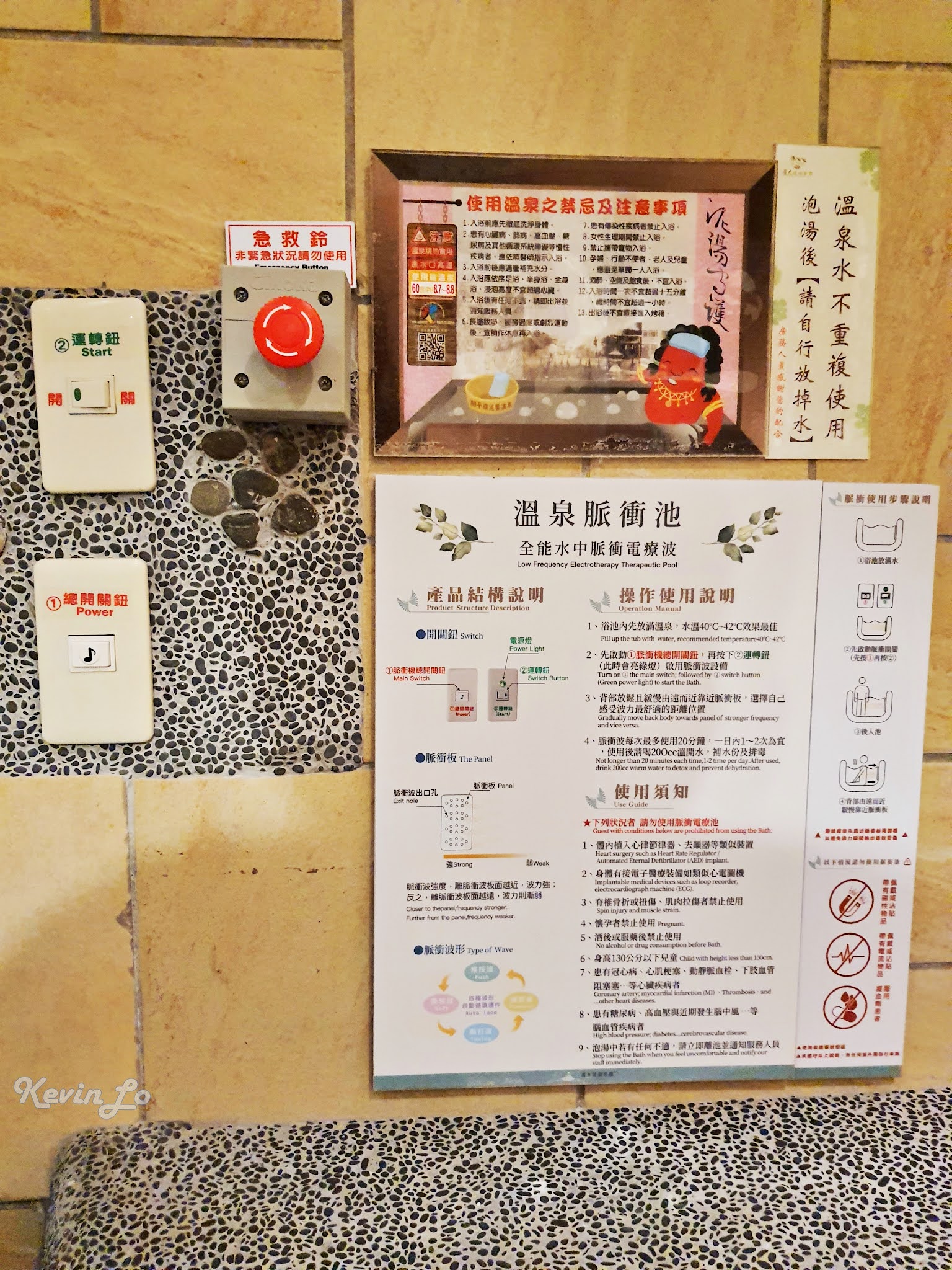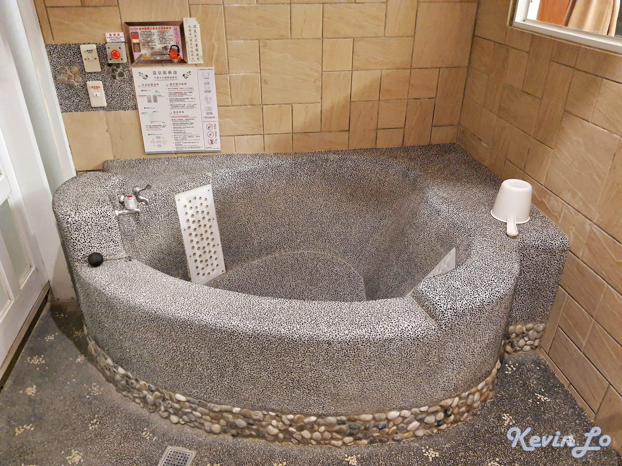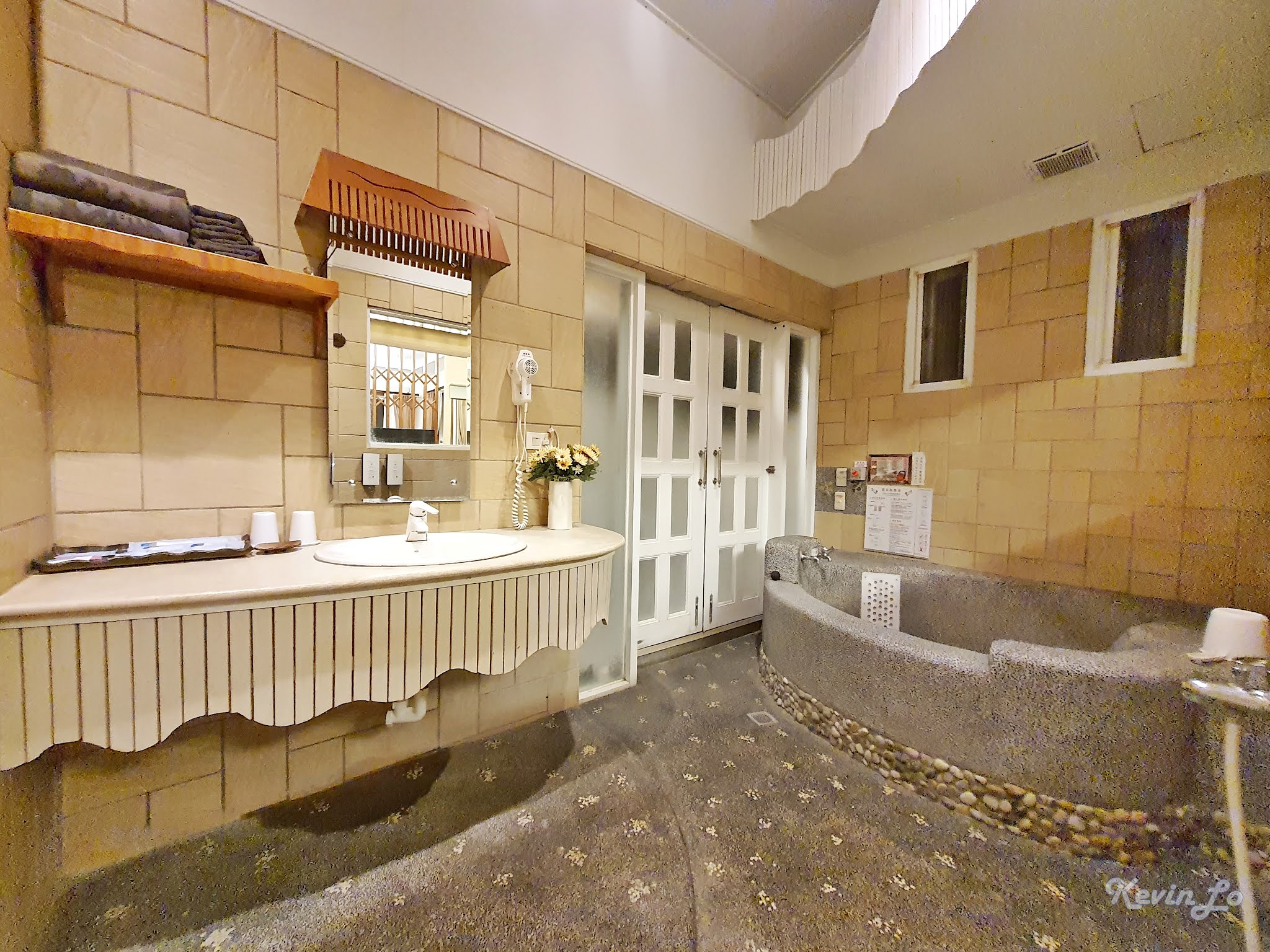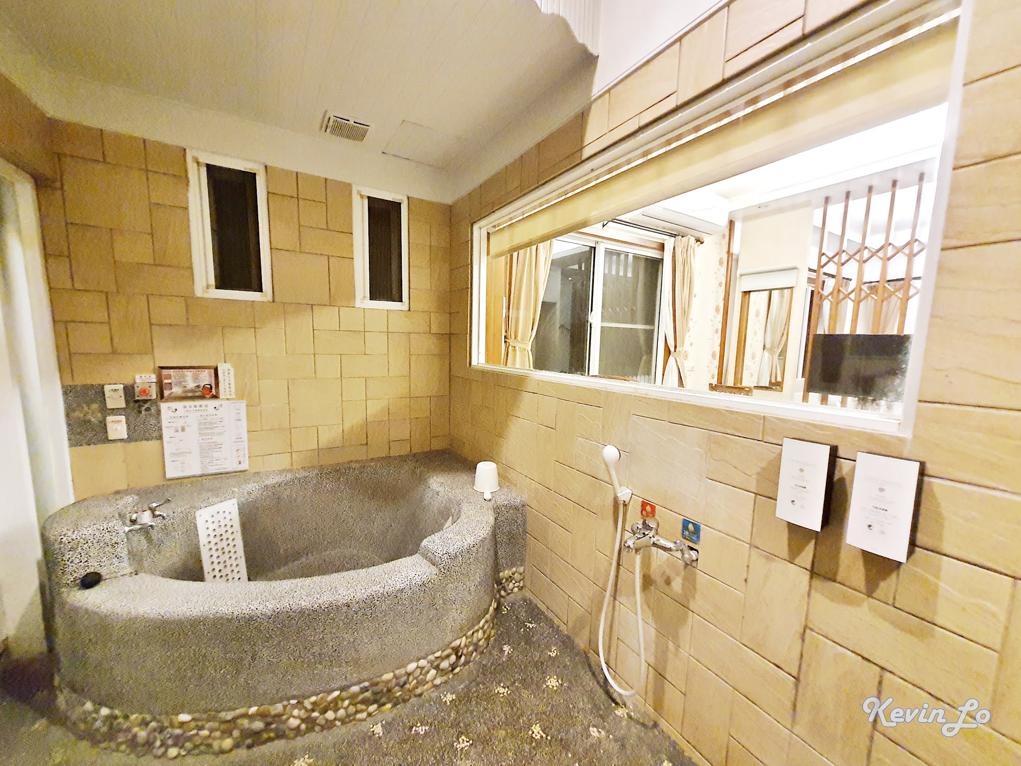 浴廁裡面的溫泉浴池設有水中脈衝電療波設備, 使用起來有點像是電療的效果, 能舒解肌肉疲勞, 搭配泥漿溫泉的碳酸鉀離子促進血液循環, 讓身心靈都能徹底放鬆 .