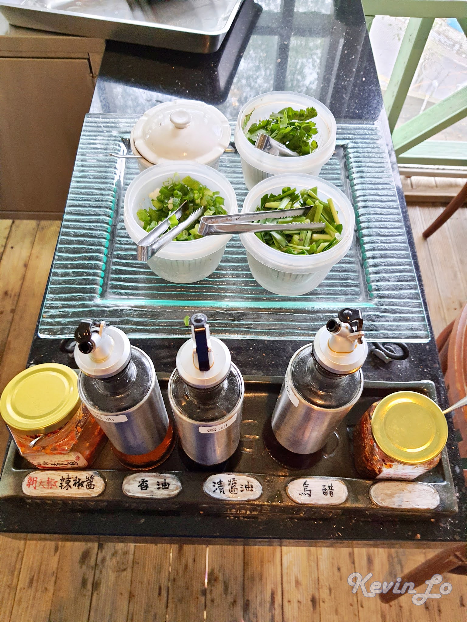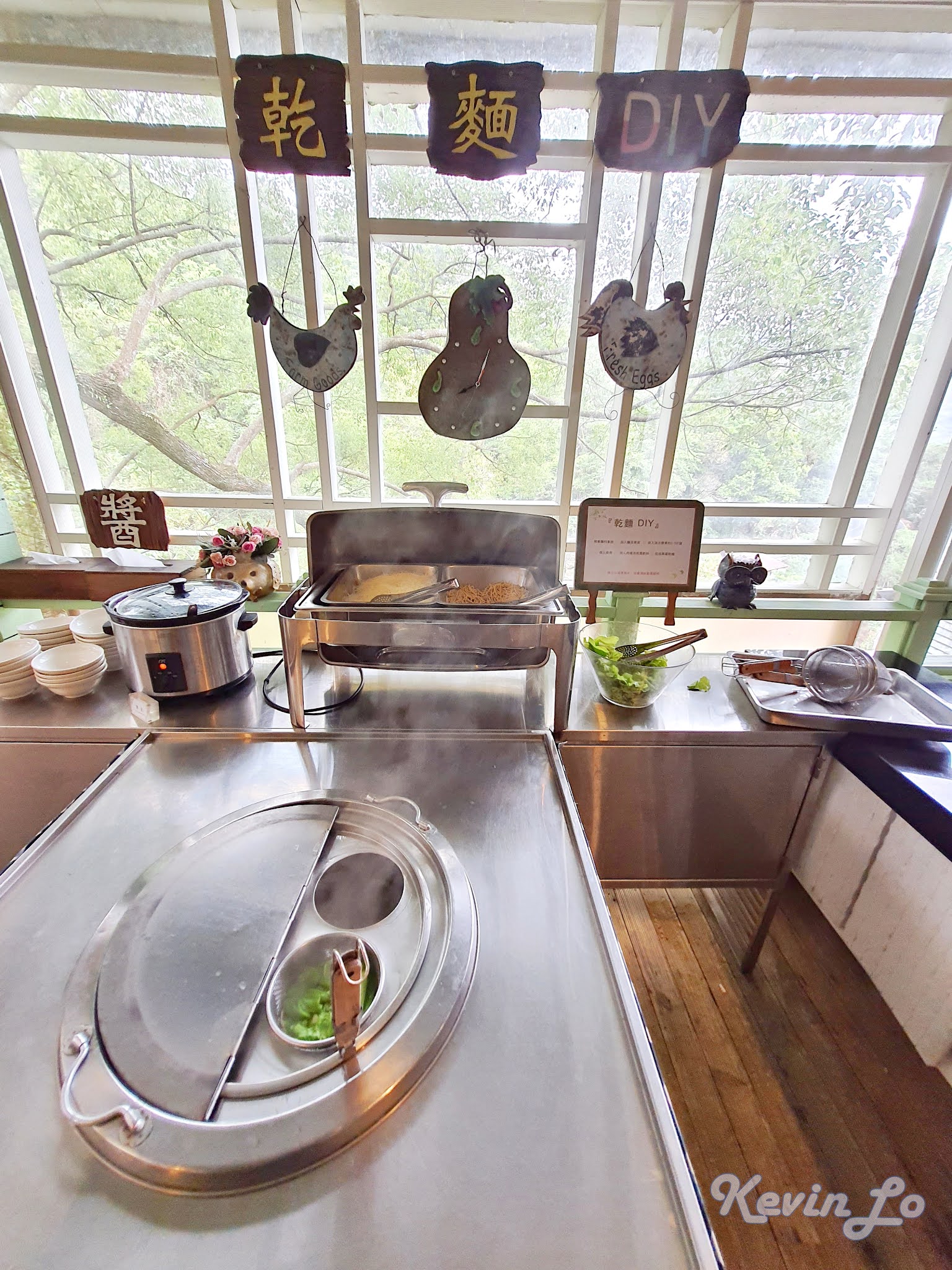 室外座位旁有一個乾麵 DIY 區, 可以挑選油麵或乾米粉, 自行夾取適當的份量在熱鍋裡燙個數分鐘, 享受煮麵的樂趣.