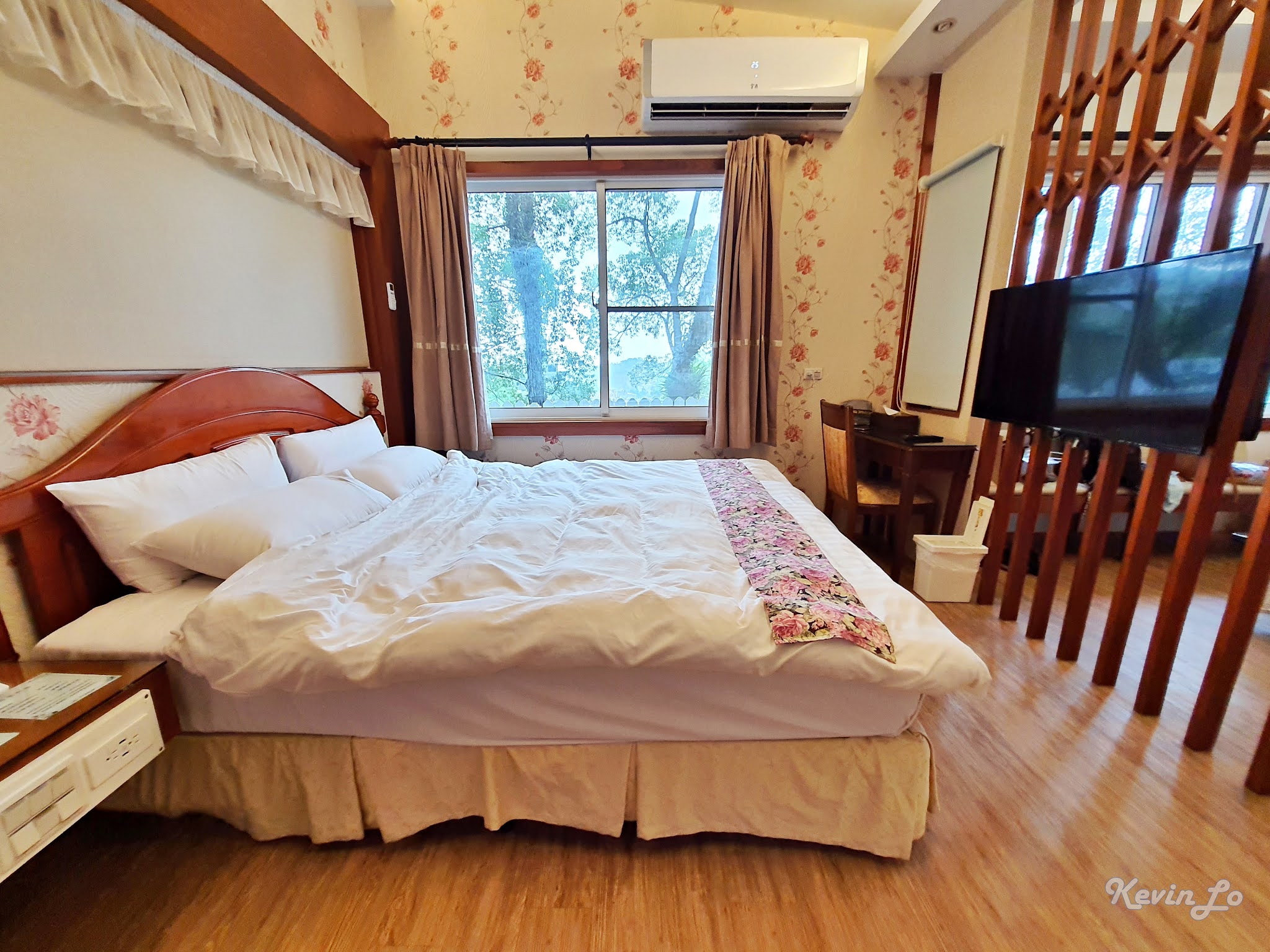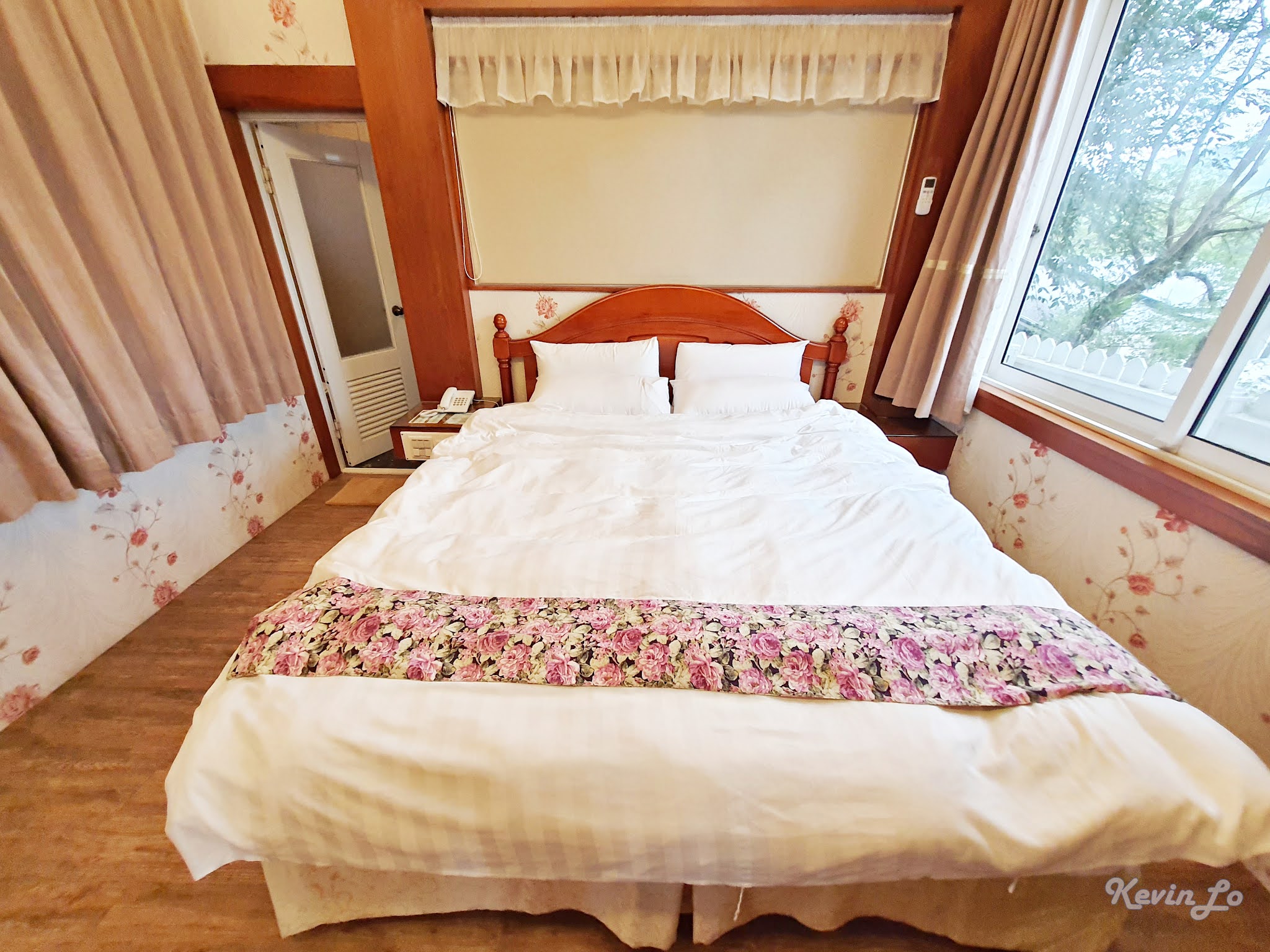 雙人房備有一張加大雙人床, 床墊硬度適中, 泡完湯消除一身疲憊後, 躺上去一秒入睡, 這一覺睡得真舒服.