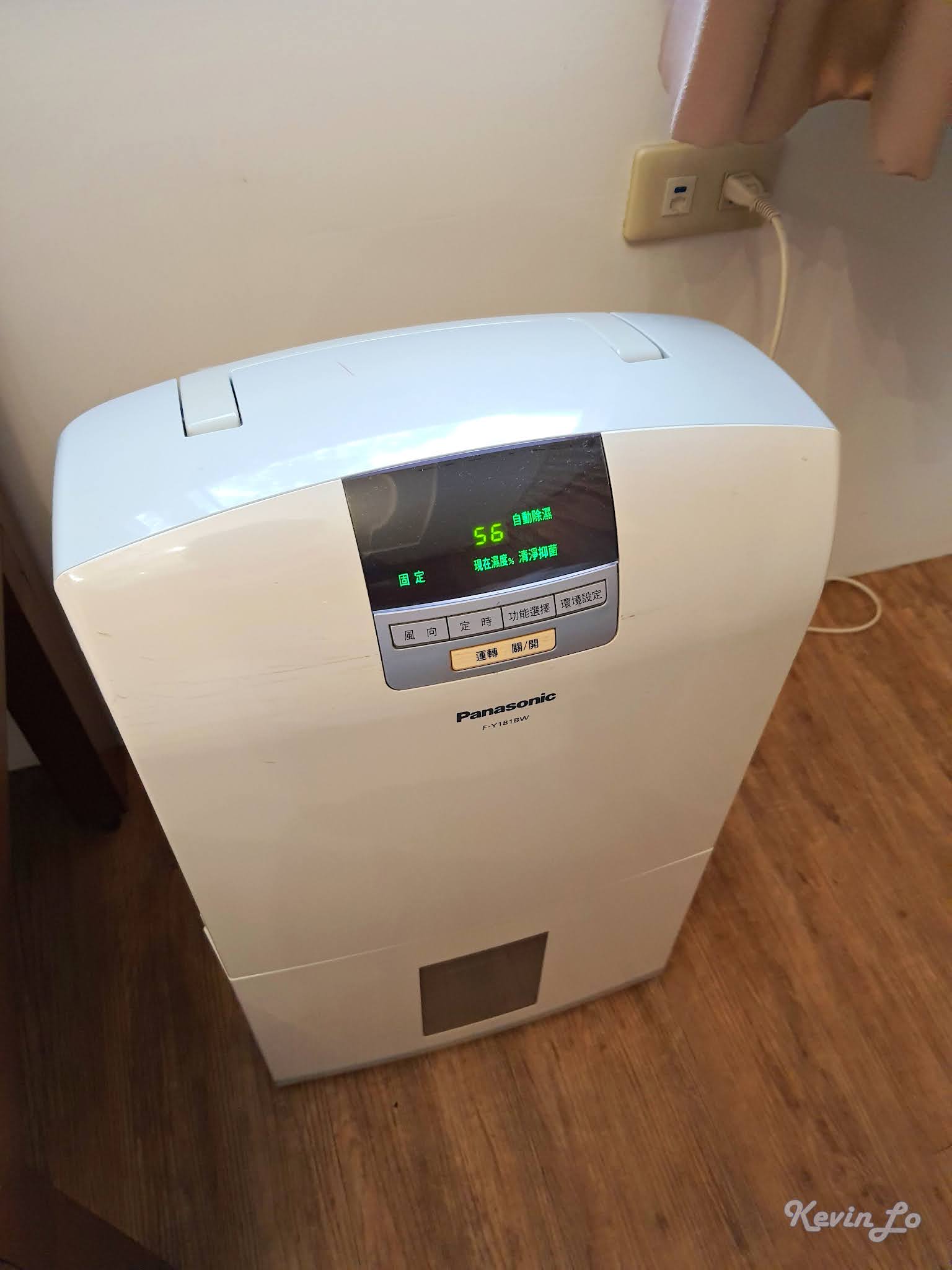 飯店人員早已貼心開啟除濕機, 在山區濕度很高, 隔天退房時, 發現水箱的水已經滿了.