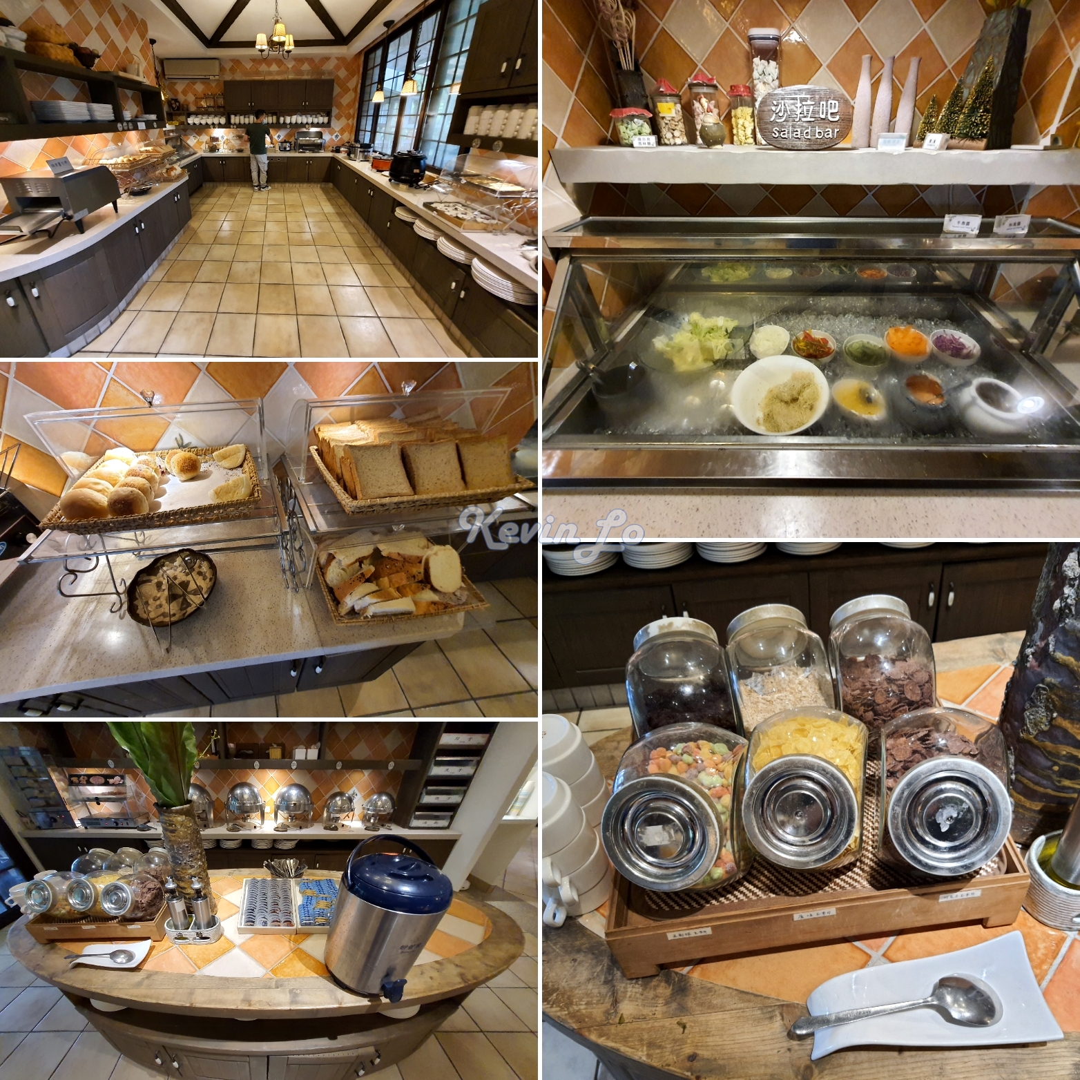 早餐以自助式吃到飽的方式呈現, 大致上以中式為主軸, 種類有麵包土司、生菜沙拉、麥片穀物、熟食湯品、甜點飲品等等.