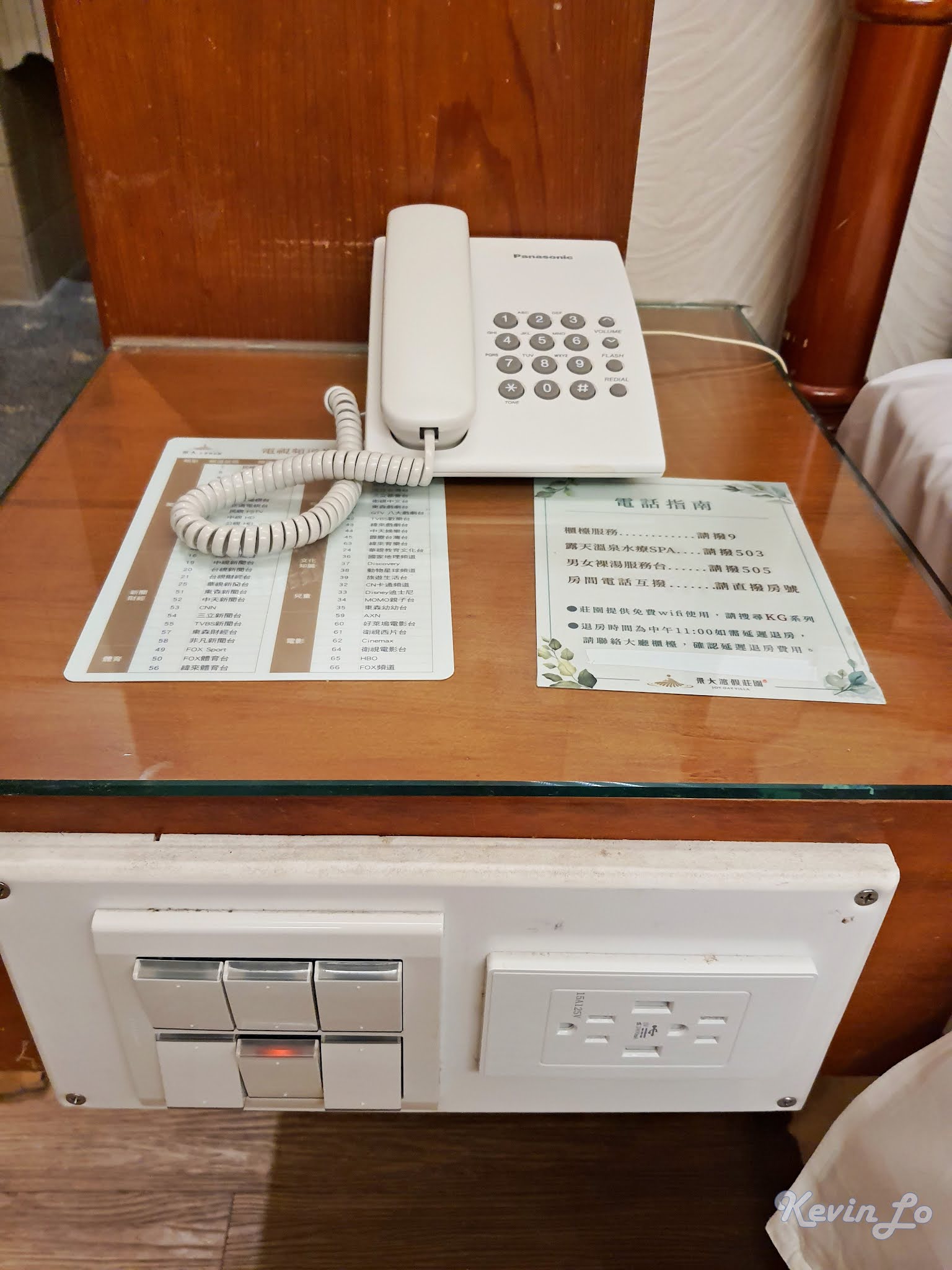 莊園有提供 Morning Call 服務, 床邊櫃有兩個插頭可以替手機充電, 六個開關可以控制房間與廁所的所有電燈設備, 不用起身去開關燈是好處之一.