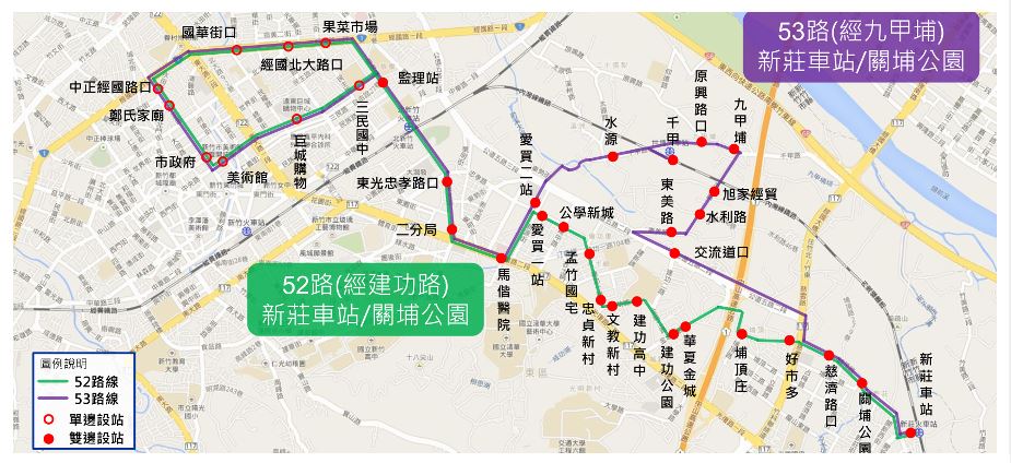 ● 要到建功路清大商圈需搭乘 52 路公車 (往埔頂路) ➤ 路線