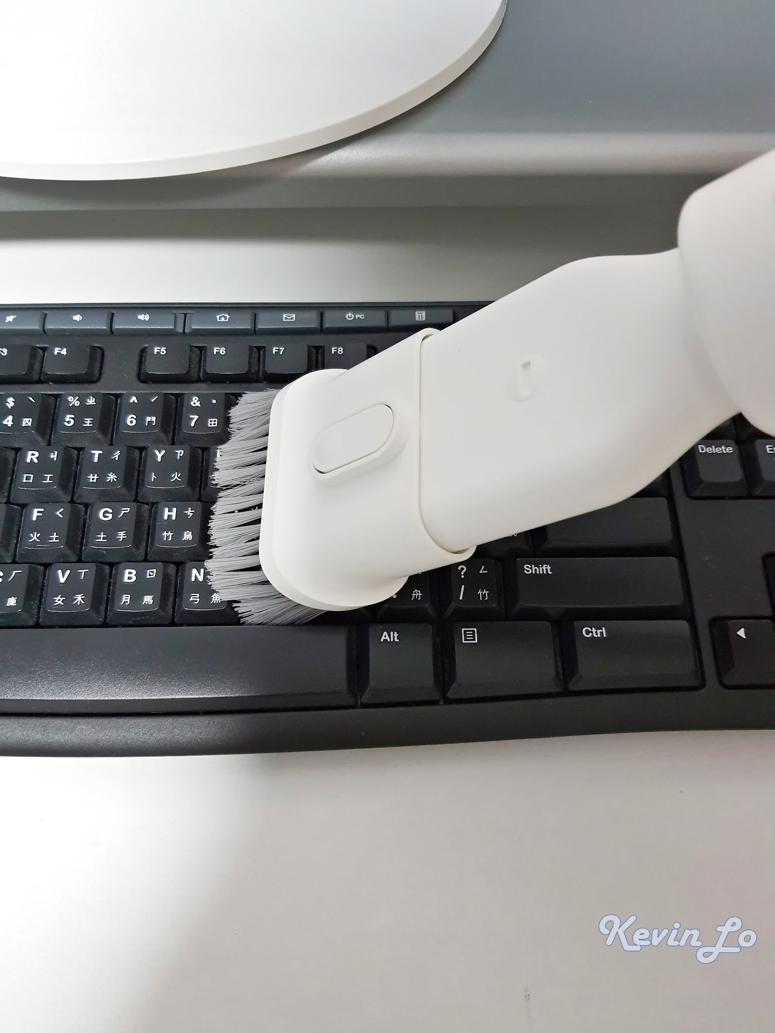 「迷你電動刷」可用來清潔各種布面的塵蟎, 但關節處是固定的, 無法左右擺動.
