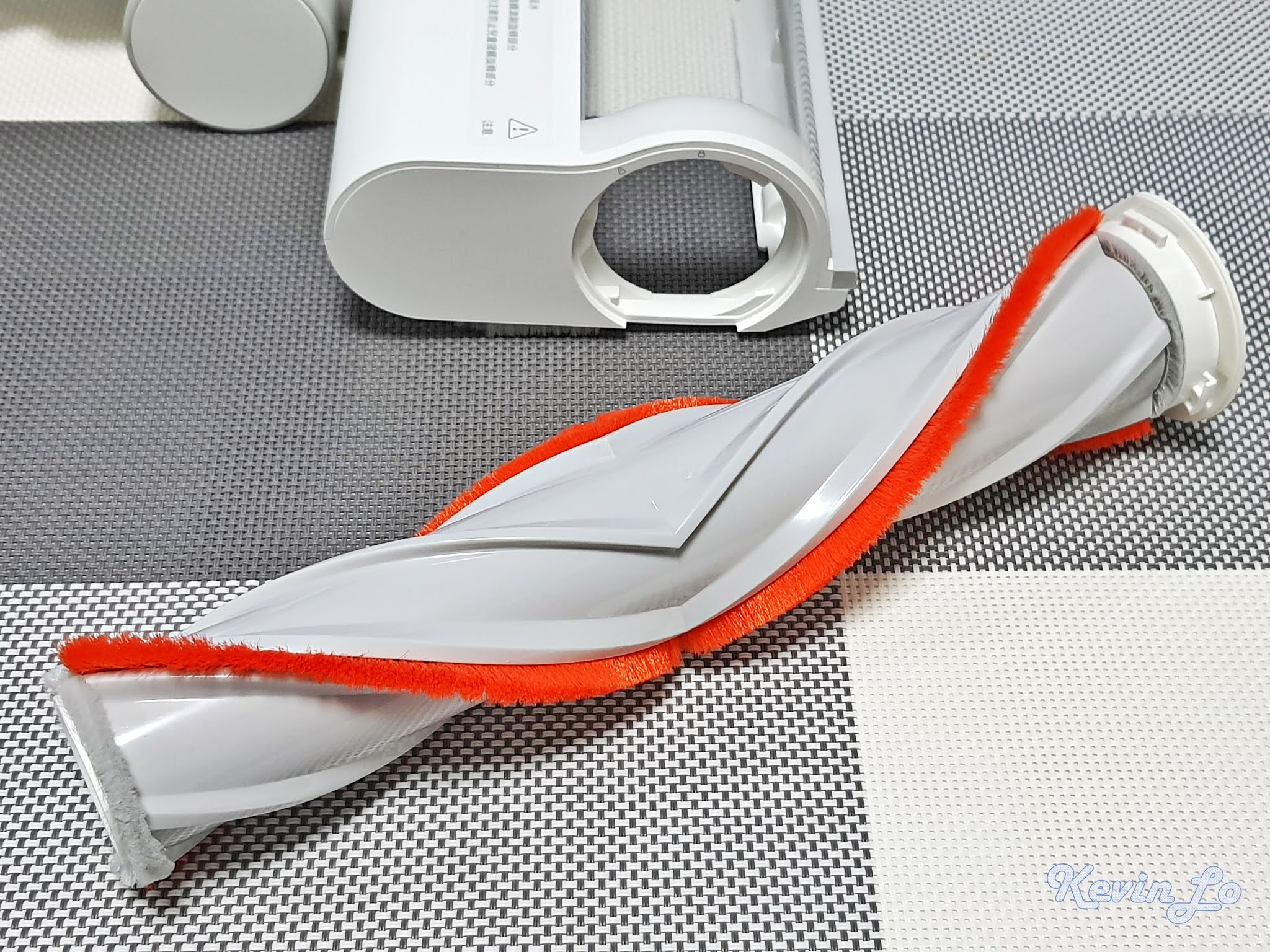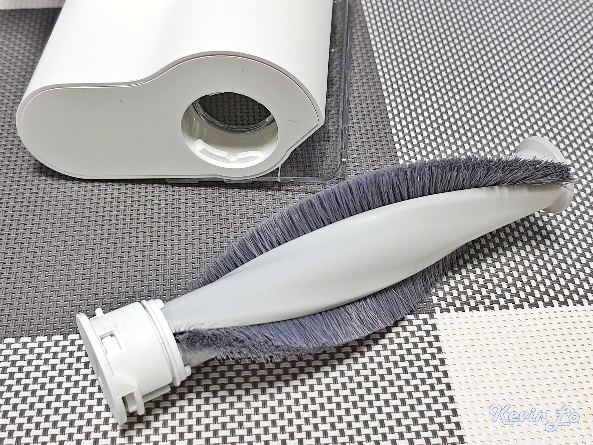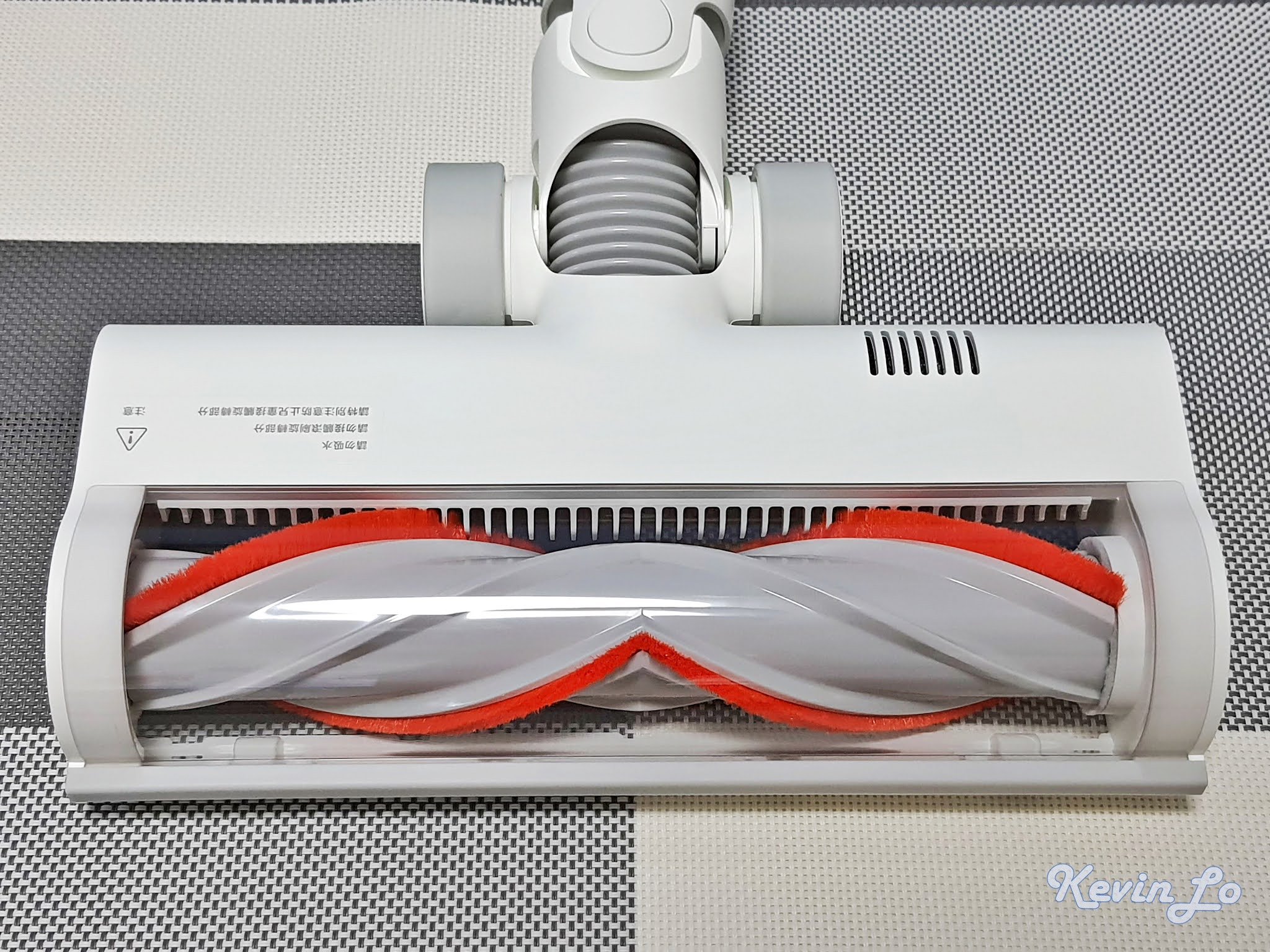 一般家裡地板都可以用「高扭力地刷」去吸塵, 關節處附有滾輪, 方便左右擺動; 透明蓋板可以看到滾刷旋轉的狀況, 透明蓋板前端有防撞膠條, 避免吸塵的過程中碰撞到傢俱, 造成表面損傷.