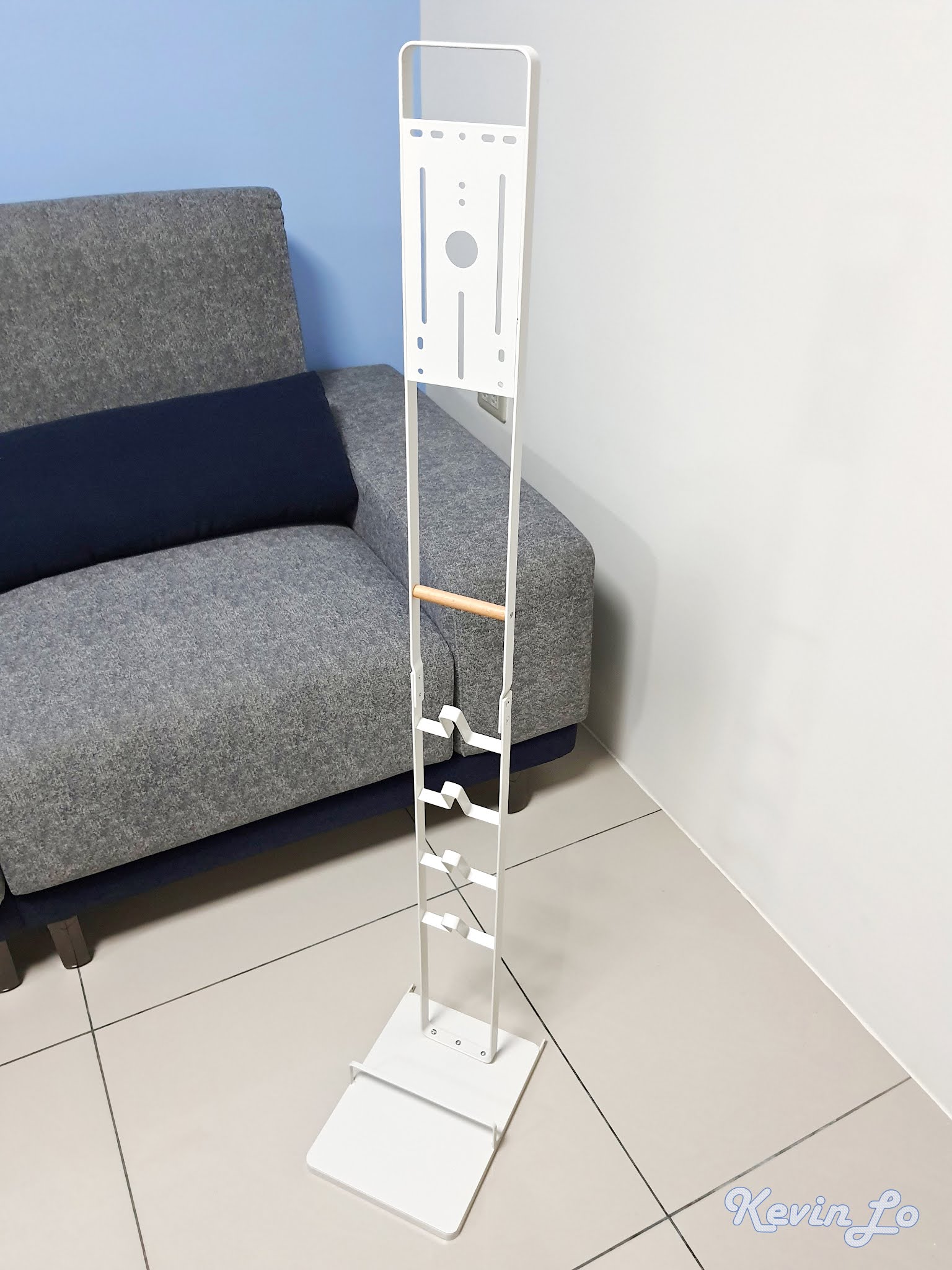 如果你像我一樣, 不想因為要安裝「充電收納二合一支架」而在牆壁或裝潢上鑽洞, 那麼考慮使用吸塵器立架是另一種選擇.