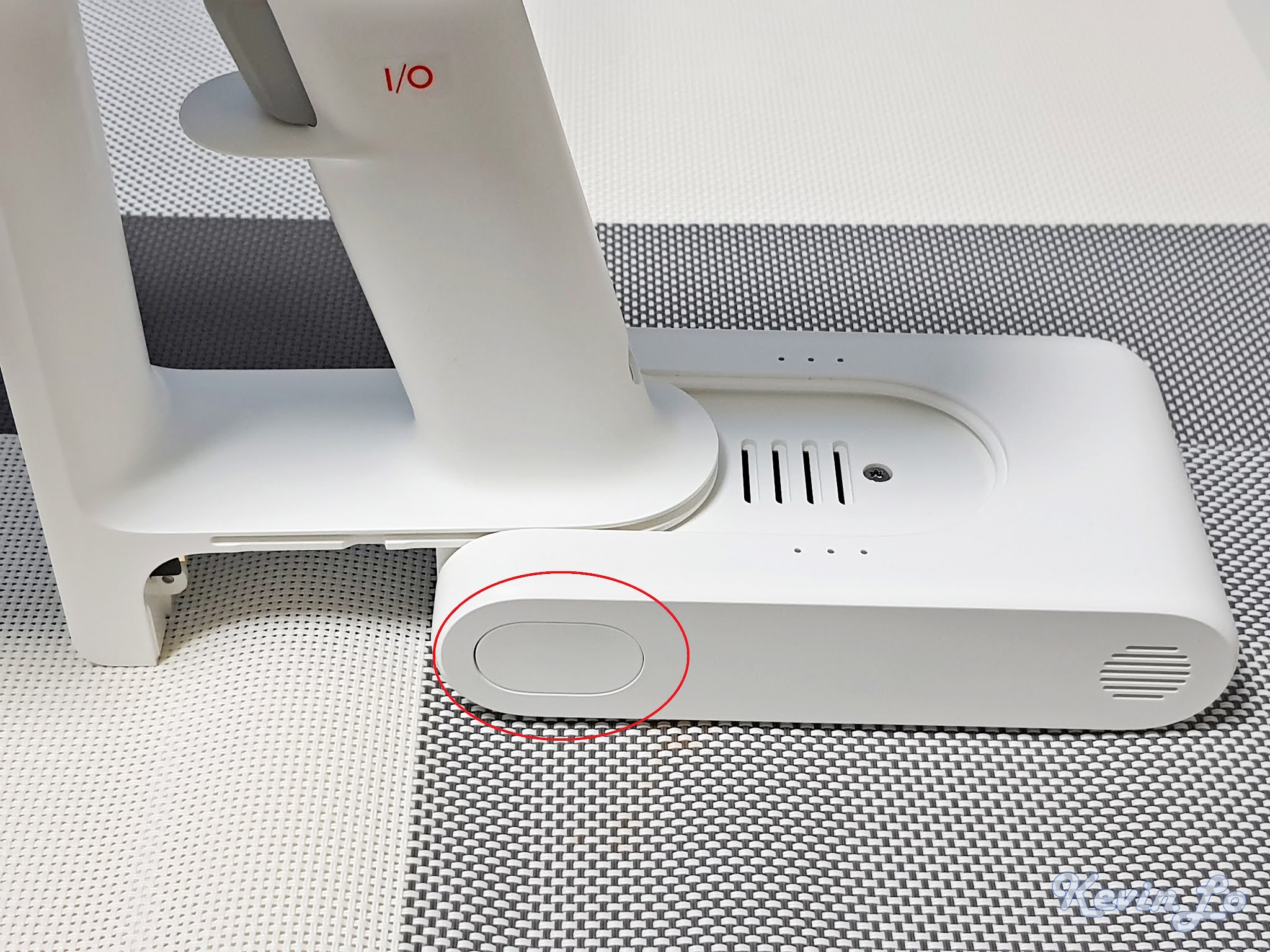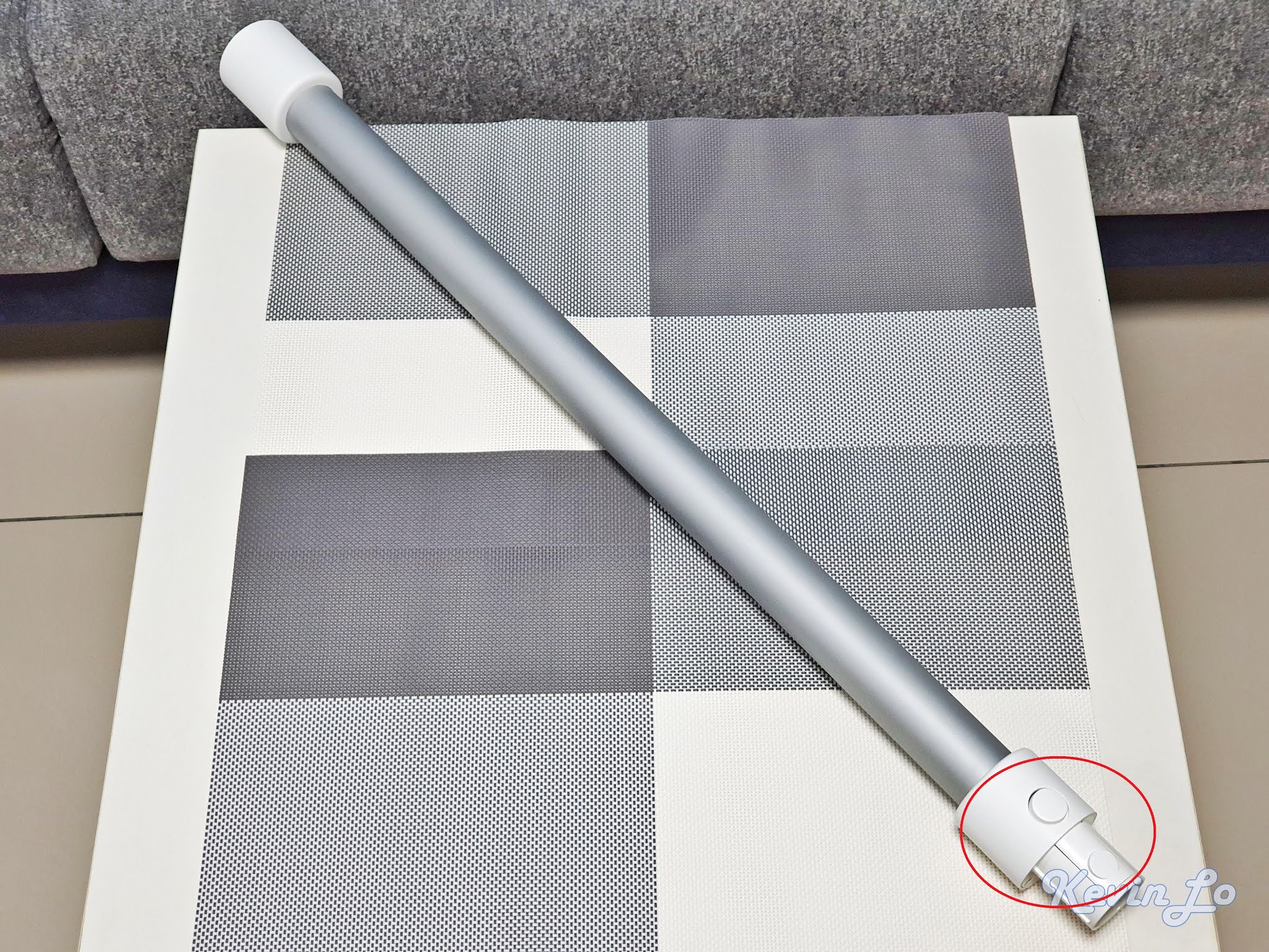【米家無線吸塵器 G9】延長桿的材質是鋁合金, 桿子上快拆的地方 (紅圈處) 是連接主機, 另一邊是接上不同的吸頭, 可以讓你吸到床底或天花板這種過深或是過高的位置.
