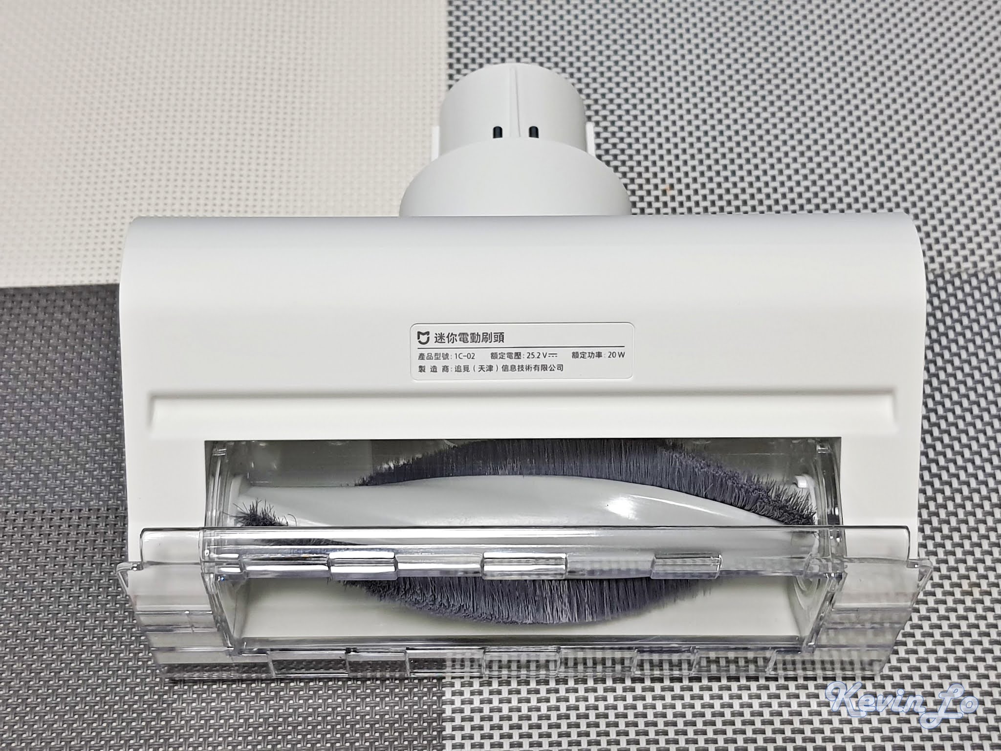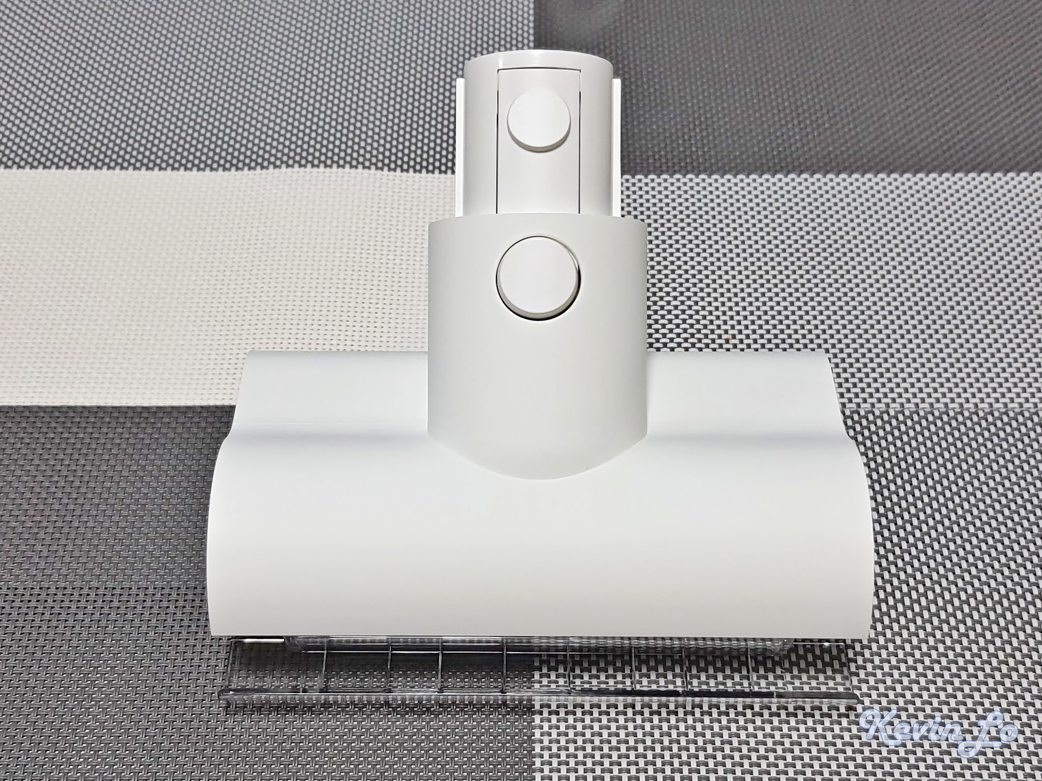 「迷你電動刷」也具備獨立馬達, 所以接頭處有金屬接頭, 可由延長桿傳送電力來驅動, 通電後讓滾刷更具動力的快速旋轉, 起到拍打的作用, 達到去除布料表面深層的灰塵和塵蟎.