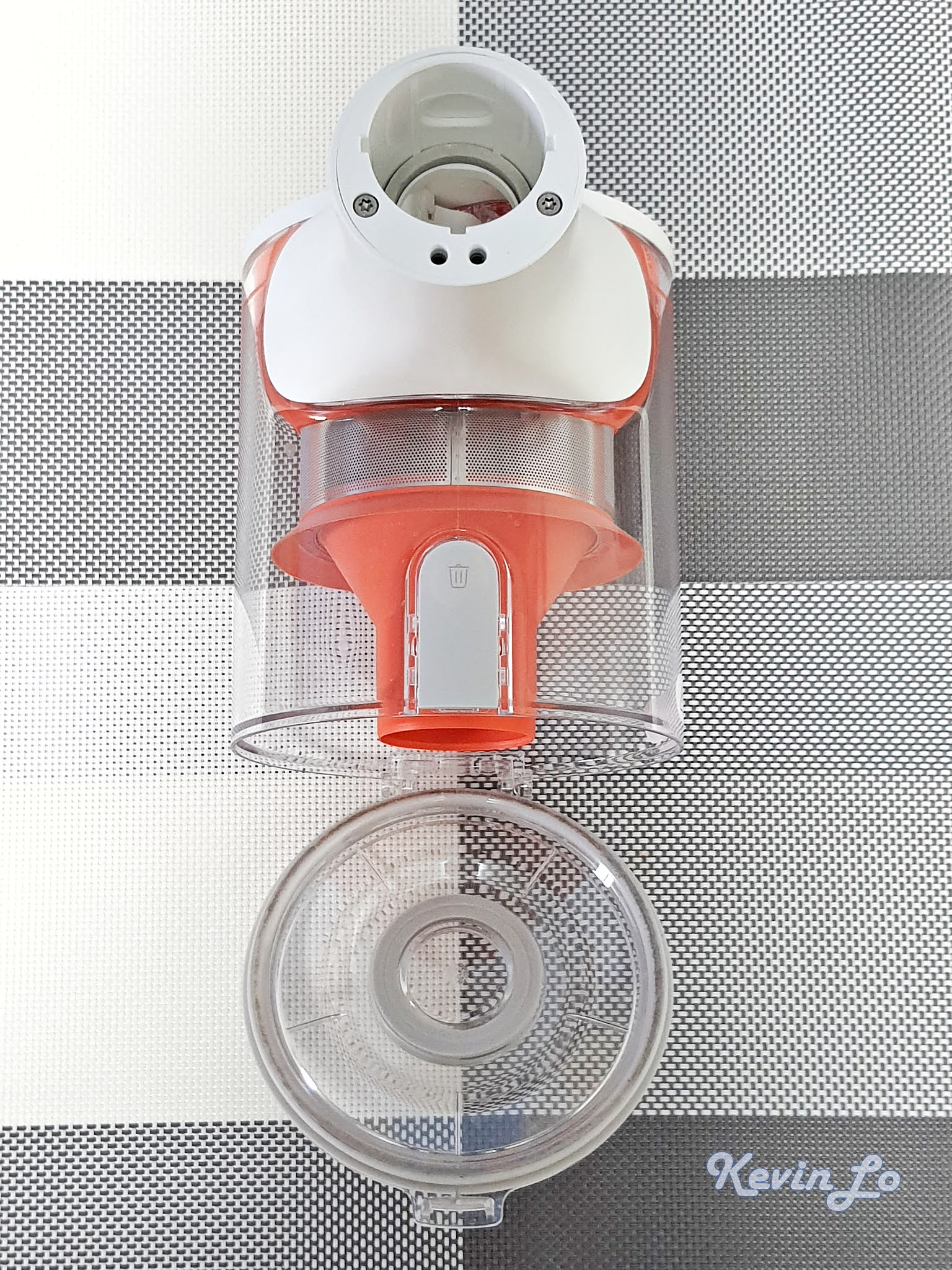 整個集塵桶可以水洗, 不用吸塵袋的設計, 免去購買耗材的不便性.
