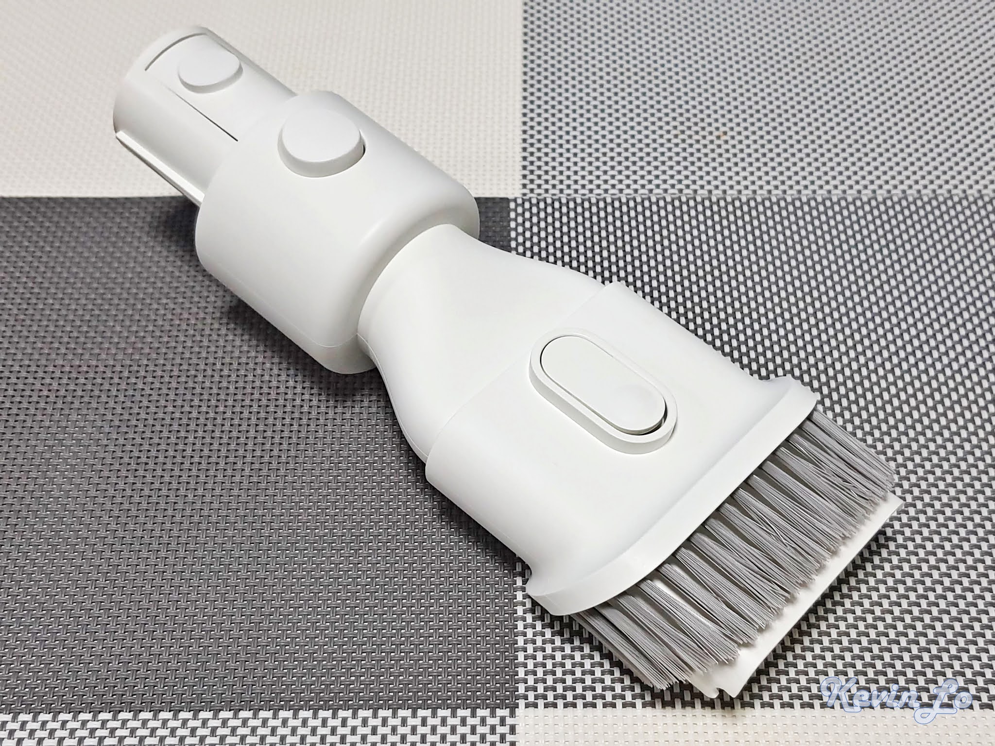 「迷你電動刷頭」有 99.97% 過濾功效, 加上強勁的動力, 能夠徹底杜絕塵蟎與過敏原, 適合用來清理床套被單、沙發與寵物毛髮等任何織物表面的灰塵和塵蟎, 但官方不建議與延長桿連接使用.