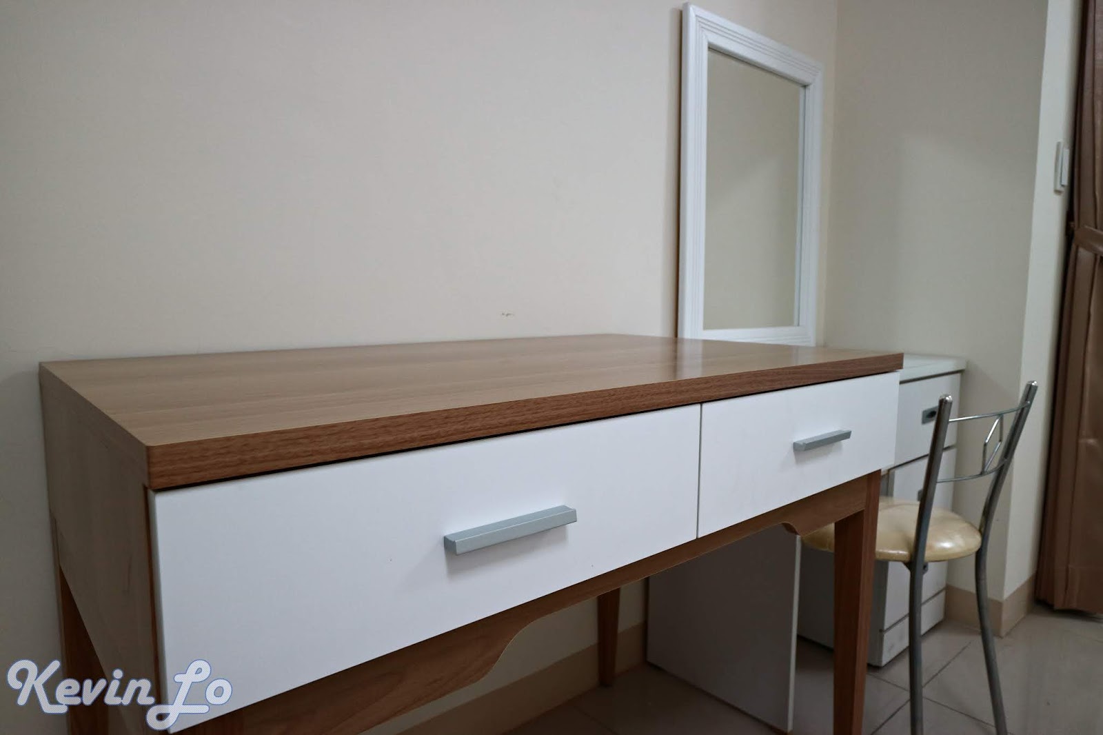 主臥配備比較多, 窗簾不能少, 最重要的是要添加化妝台.