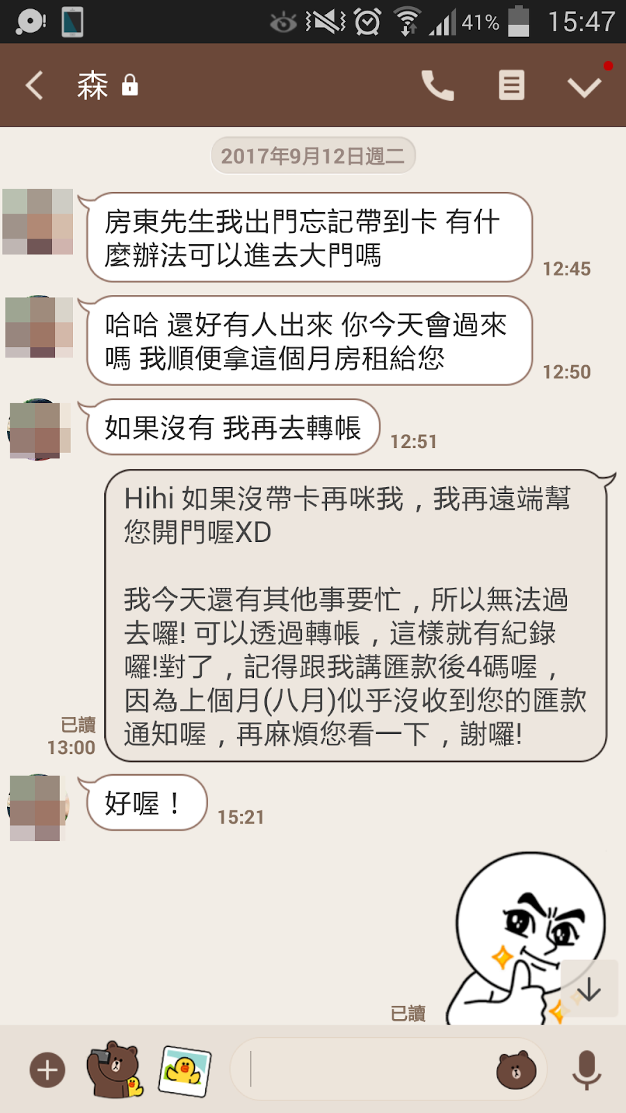 當下就立馬轉帳給房東, 我想正常人都是這種反應吧!