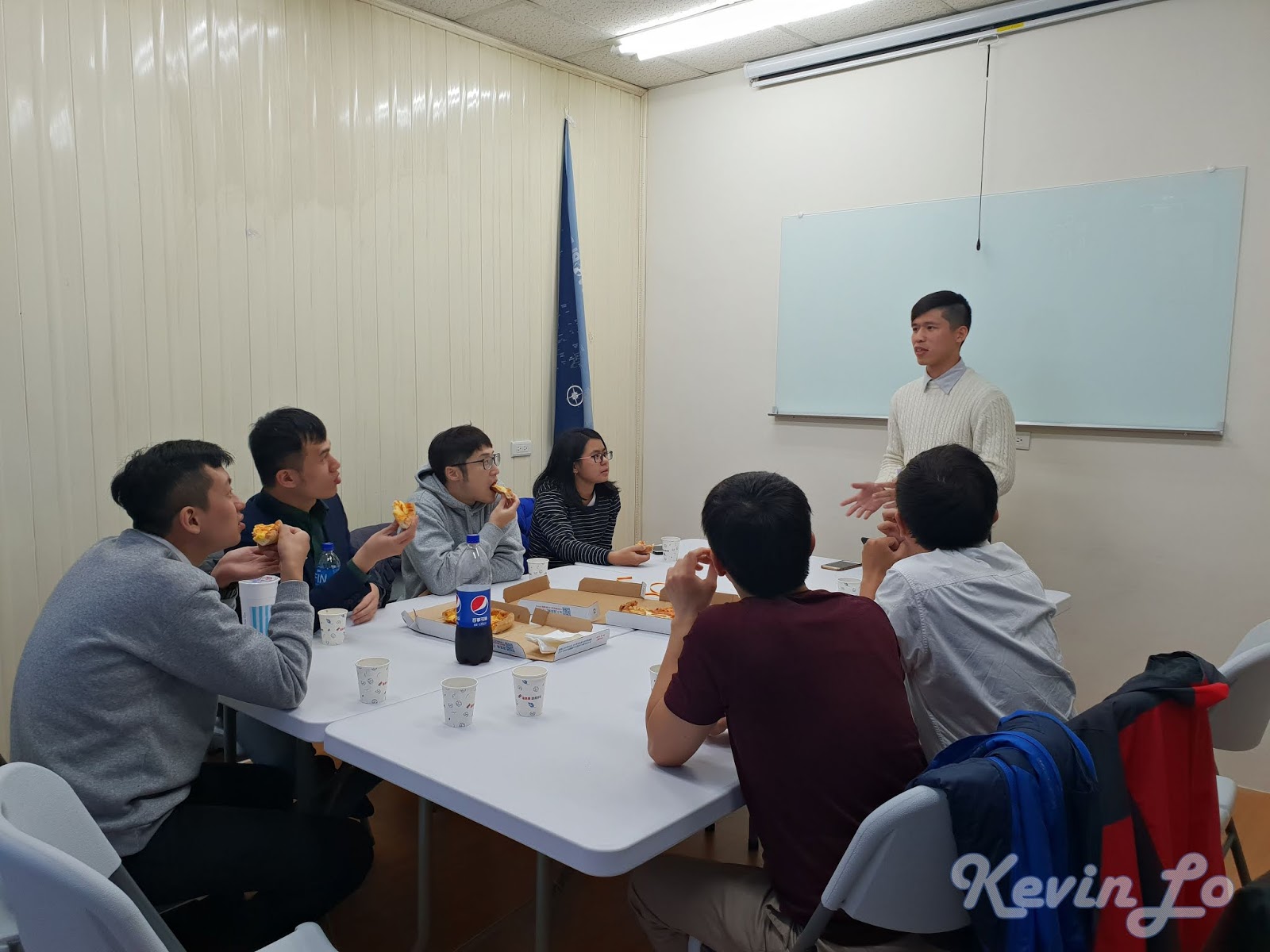 因桌子尺寸較大, 所以教室型的擺設可容納 8 人.