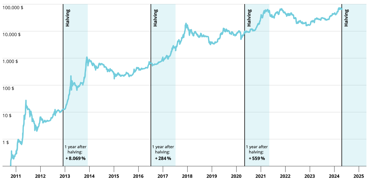 從 2011 年以來的歷史走勢可以發現,每次「減半事件」發生後的數月到一年之內,比特幣價格幾乎都會出現明顯的上漲趨勢,甚至多次刷新歷史高點,這也成為市場上著名的「減半週期牛市」現象。