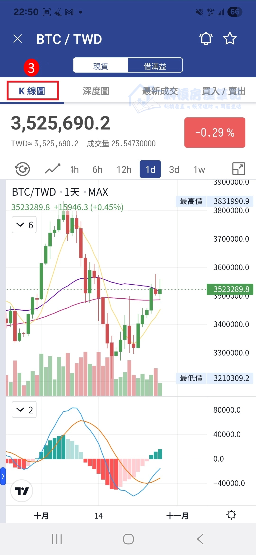 - 步驟 4: 你還可以查看比特幣的即時價格變動圖表、過去 24 小時的交易量、最高和最低價格等資訊。
