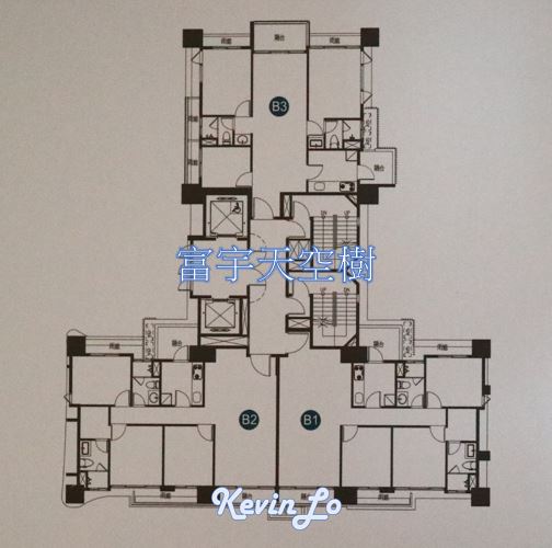 ● B6 為 B 棟最小坪數, 鄰近逃生通道, 面西與面北之三面採光, 三房兩衛房型, 衛浴皆有對外窗, 大門開門位置的地方可以做玄關, 主臥室與臥室 B 門對門.